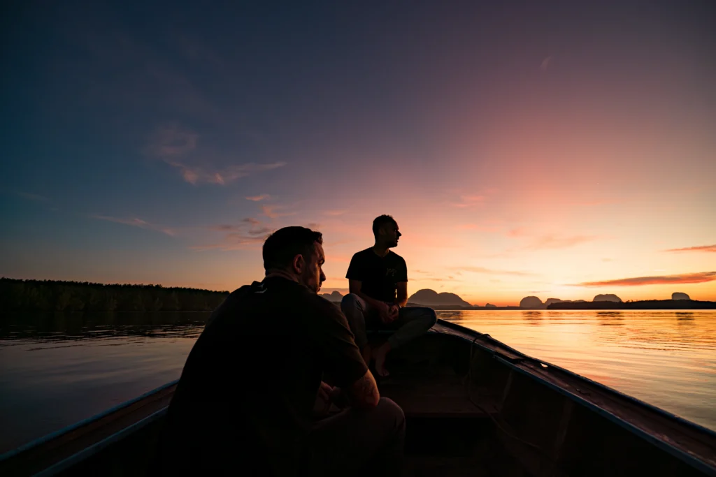 Soft light danced across the water at sunrise, while the gentle movement of boats echoed the rhythm of nature. Guests moved quietly between paths and gardens, framed by reflections of the sky.We chose to shoot during golden hours, allowing the day’s natural progression to shape the story. As a result, the images flow with life — from the first shimmer of morning to the calm blush of dusk.